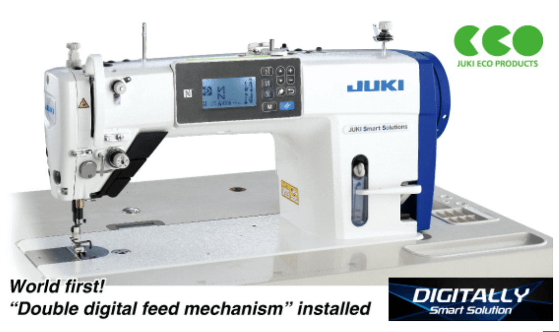 Juki DDL-9000CS Series Direct-drive, high-speed, lockstitch sewing system with automatic thread trimmer.   “Double digital...