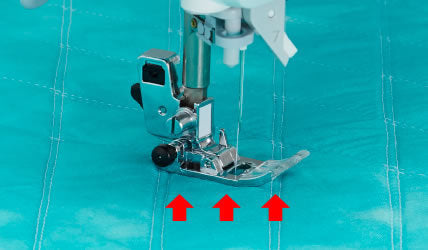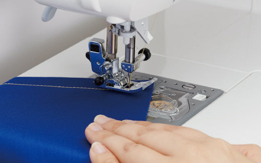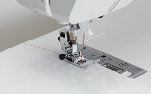 El prensatelas flotante se eleva en incrementos de 0,1 mm para evitar que la tela se deforme. Ideal para capas de acolchado, tejidos de punto, telas texturizadas y costuras irregulares. Esta función garantiza un avance suave y una costura perfectamente uniforme.