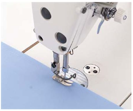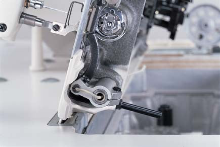 Presser-foot lift up to 13 mm by knee lifter helps when loading workpieces and navigating thickness transitions and layered joins.