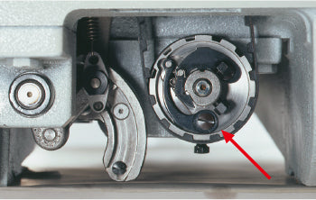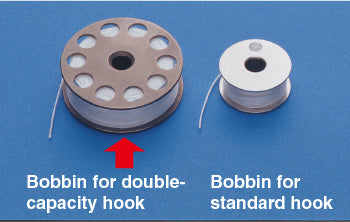 The large hook sized for heavier thread counts (#20–#5 / B69–B138) allows operators to run strong load-bearing seams with fewer bobbin changes.
