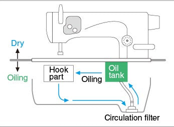 Tank-style semi-dry system keeps the hook lubricated consistently, helping produce smooth stitches when sewing slowly.