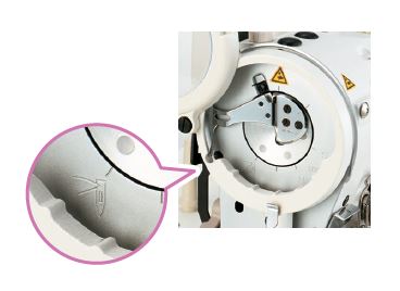 Engraved markers on the faceplate make it easy to adjust the timing between the needle, feed dog, and hook for optimal stitch consistency.