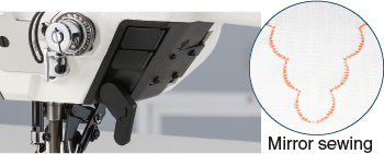 The triple hand switch places three major controls — touch-back, mirror stitching, and multi-layer correction — right at the operator’s fingertips, saving time and improving control during detailed work.