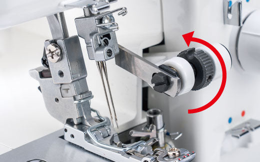A dial-operated lower knife width adjustment lets you fine-tune cutting width for perfect seams, narrow edges.
