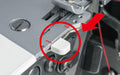 Lower looper disengages for direct access. Slide the thread into the slot and snap it back into place — looper threading takes only seconds.