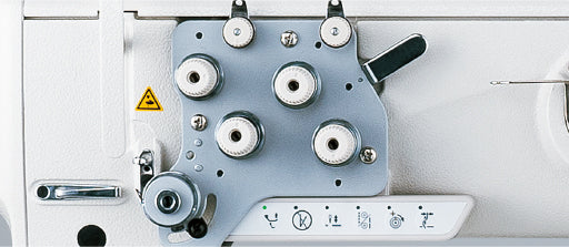 Factory dual needle-thread tension lets you run low-count (thick) threads under higher tension with consistent results. -