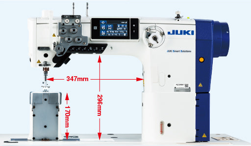 Built for seats, sofas, and structured bags, the JUKI PLC-2710NVS-70BBZ combines a tall post bed, true unison feed, and a vertical-axis 2.0-fold capacity hook to guide thick, 3D stacks smoothly. Its semi-dry, direct-drive digital head lets you set/store key parameters and clone them for line-wide consistency, while automatic thread trimming and on-head controls streamline handling. Up to 2,500 stitches/min, 12 mm max stitch, and 20 mm auto presser lift deliver stable pitch over step-ups for consistent premium-looking seams.