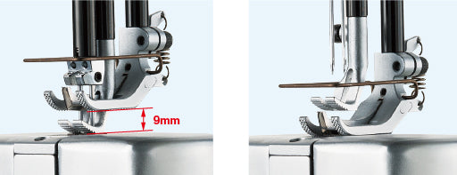 True unison feed with electronically controlled 0.5–9.0 mm alternating lift keeps layers aligned through step-ups and tight curves. -