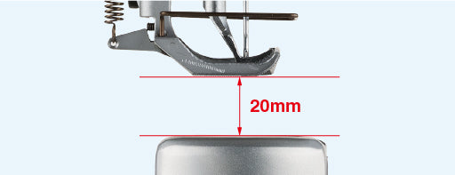Higher presser-bar lift up to 20 mm (auto), alternating lift 0.5–9.0 mm, long reach 347 mm, and 170 mm post height support bulky, three-dimensional work.