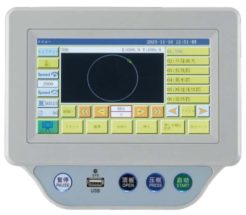 The operation panel supports DXF, AI, PLT, and DST — formats already widespread in apparel and technical-textile production — so the machine can run customer patterns right away. Its high-capacity memory stores up to 999 patterns, and the included editing software simplifies on-site pattern adjustments.