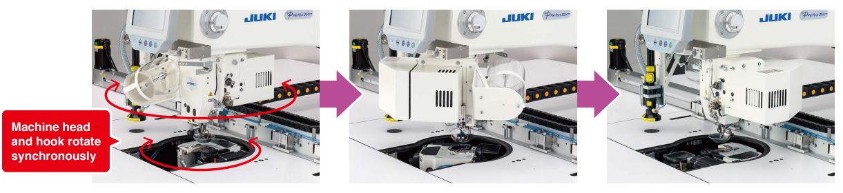 With the head, hook, and feed rotating in sync with the sewing path, seam quality stays consistent on curves and direction changes. This cuts output variation and reduces the volume of pieces needing correction. -