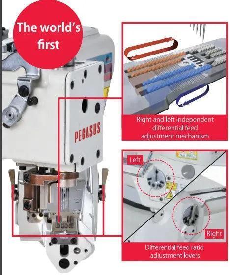 - Oil-Free Sewing Environment: Equipped with Pegasus’ unique "Oil Barrier" technology, the LaRgo Series features the world’s first completely enclosed machine bed. The oil seals attached to various areas provide high oil barrier effectiveness, protecting sewn products from oil stains.
